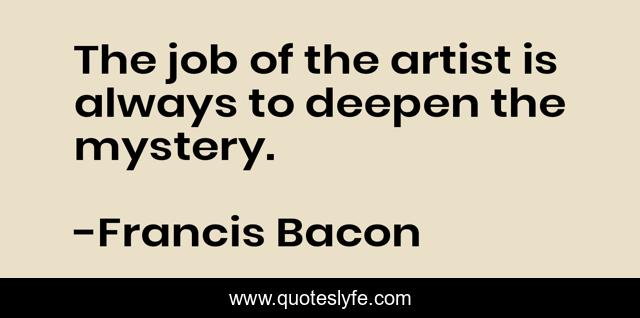 This page presents the quote "The job of the artist is always to deepen the mystery.". Author of this quote is Francis Bacon. .
