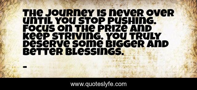 The journey is never over until you stop pushing. Focus on the prize and keep striving. You truly deserve some bigger and better blessings.