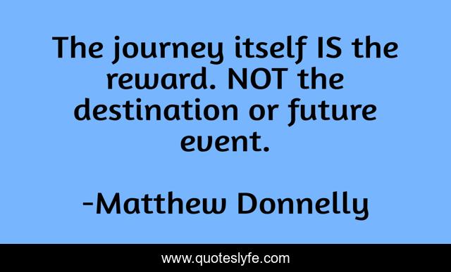 "Matthew Donnelly Quotes." Quoteslyfe.com, 2025. Fri. 05 Dec. 2025. <https://www.quoteslyfe.com/quote/The-journey-itself-IS-the-reward-NOT-174473>.
