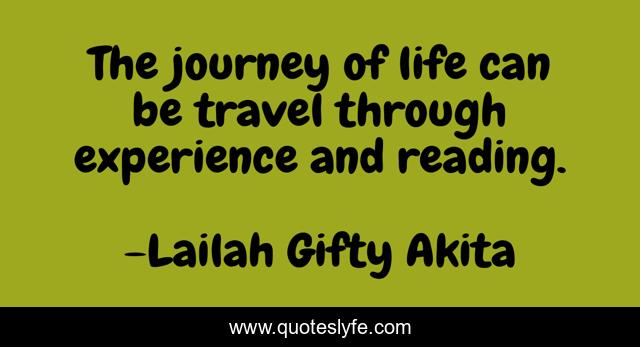 This page presents the quote "The journey of life can be travel through experience and reading.". Author of this quote is Lailah Gifty Akita. This quote is about life, self-awareness, travel, motivation, journey, self-help, reading, inspiration,.