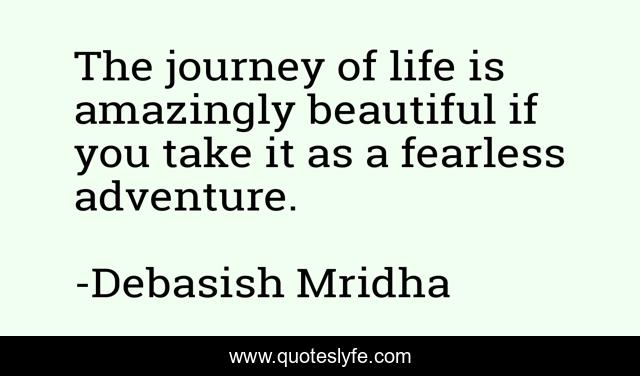 This page presents the quote "The journey of life is amazingly beautiful if you take it as a fearless adventure.". Author of this quote is Debasish Mridha. This quote is about beautiful-fearless-adventure, philosophy, debasish-mridha, quotes, inspirational, enthusiasm, debasish-mridha-m-d, journey-of-life,.