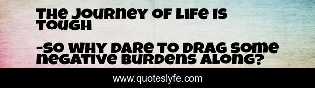 This page presents the quote "The journey of life is tough". Author of this quote is so why dare to drag some negative burdens along?. .