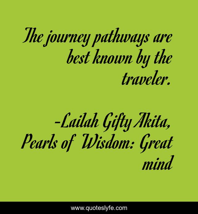 "Lailah Gifty Akita, Pearls of Wisdom: Great mind Quotes." Quoteslyfe.com, 2025. Sun. 07 Dec. 2025. <https://www.quoteslyfe.com/quote/The-journey-pathways-are-best-known-by-95034>.