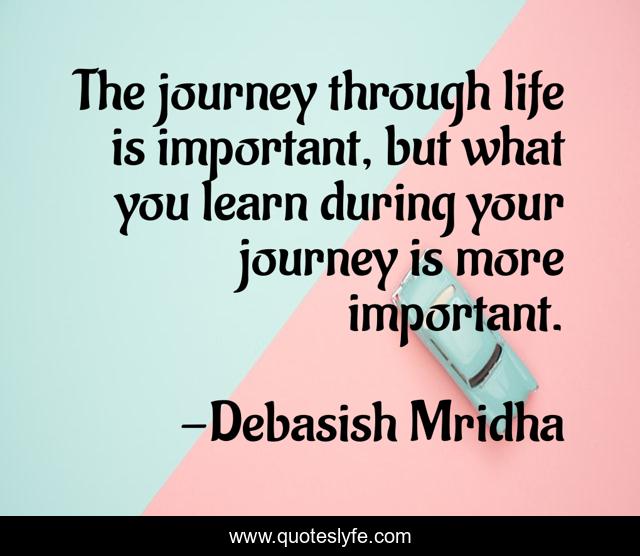 This page presents the quote "The journey through life is important, but what you learn during your journey is more important.". Author of this quote is Debasish Mridha. This quote is about philosophy, the-journey-is-important, journey-through-life, debasish-mridha, learn-from-life, quotes, life-journey, inspirational, enthusiasm,.