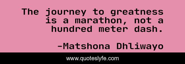 "Matshona Dhliwayo Quotes." Quoteslyfe.com, 2025. Sat. 06 Dec. 2025. <https://www.quoteslyfe.com/quote/The-journey-to-greatness-is-a-marathon-189938>.