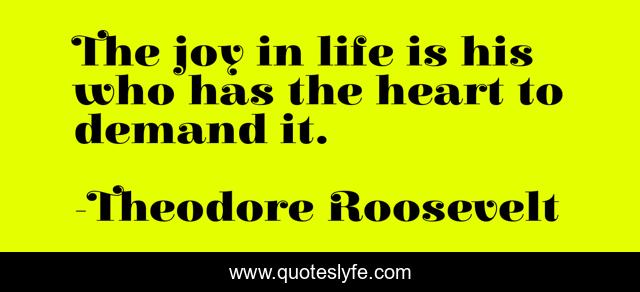 This page presents the quote "The joy in life is his who has the heart to demand it.". Author of this quote is Theodore Roosevelt. This quote is about life, self-fulfillment, self-actualization, self-determination,.