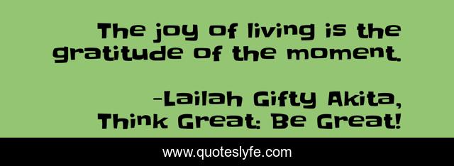 "Lailah Gifty Akita, Think Great: Be Great! Quotes." Quoteslyfe.com, 2025. Tue. 09 Dec. 2025. <https://www.quoteslyfe.com/quote/The-joy-of-living-is-the-gratitude-85076>.