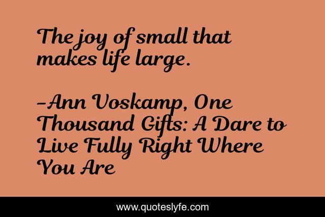 "Ann Voskamp, One Thousand Gifts: A Dare to Live Fully Right Where You Are Quotes." Quoteslyfe.com, 2025. Sun. 07 Dec. 2025. <https://www.quoteslyfe.com/quote/The-joy-of-small-that-makes-life-97606>.
