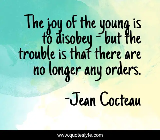 This page presents the quote "The joy of the young is to disobey - but the trouble is that there are no longer any orders.". Author of this quote is Jean Cocteau. .