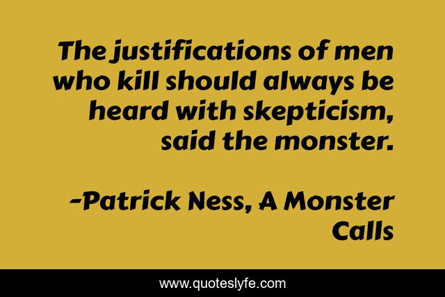 "Patrick Ness, A Monster Calls Quotes." Quoteslyfe.com, 2025. Fri. 05 Dec. 2025. <https://www.quoteslyfe.com/quote/The-justifications-of-men-who-kill-should-208723>.