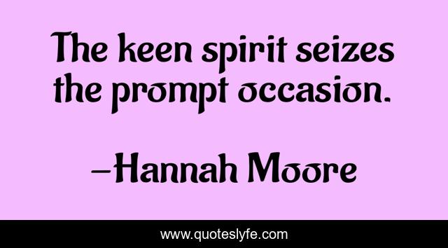 This page presents the quote "The keen spirit seizes the prompt occasion.". Author of this quote is Hannah Moore. This quote is about going, getting,.