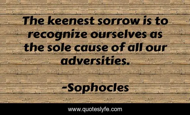 This page presents the quote "The keenest sorrow is to recognize ourselves as the sole cause of all our adversities.". Author of this quote is Sophocles. .