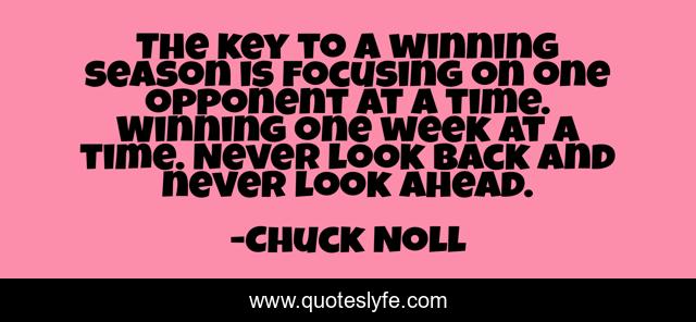 This page presents the quote "The key to a winning season is focusing on one opponent at a time. Winning one week at a time. Never look back and never look ahead.". Author of this quote is Chuck Noll. This quote is about week, season, winning,.