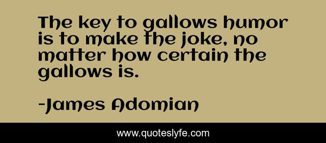 This page presents the quote "The key to gallows humor is to make the joke, no matter how certain the gallows is.". Author of this quote is James Adomian. This quote is about matter, key, joke,.