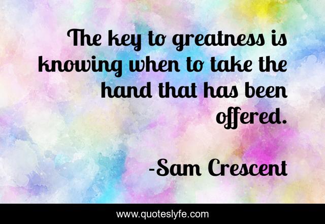 This page presents the quote "The key to greatness is knowing when to take the hand that has been offered.". Author of this quote is Sam Crescent. This quote is about romance, erotic-romance,.