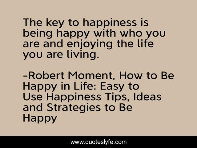 This page presents the quote "The key to happiness is being happy with who you are and enjoying the life you are living.". Author of this quote is Robert Moment, How to Be Happy in Life: Easy to Use Happiness Tips, Ideas and Strategies to Be Happy. This quote is about mood, success, enjoying-life, happiness-positive-outlook, lifestyles, depression,.