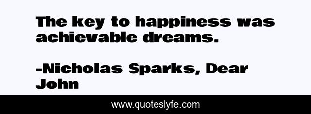"Nicholas Sparks, Dear John Quotes." Quoteslyfe.com, 2025. Fri. 05 Dec. 2025. <https://www.quoteslyfe.com/quote/The-key-to-happiness-was-achievable-dreams-183034>.