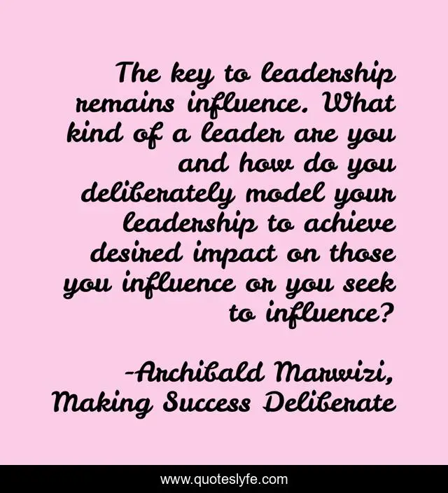 "Archibald Marwizi, Making Success Deliberate Quotes." Quoteslyfe.com, 2025. Mon. 08 Dec. 2025. <https://www.quoteslyfe.com/quote/The-key-to-leadership-remains-influence-What-227593>.
