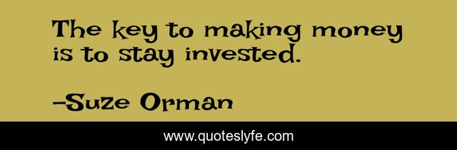 This page presents the quote "The key to making money is to stay invested.". Author of this quote is Suze Orman. This quote is about making money, key, stay,.