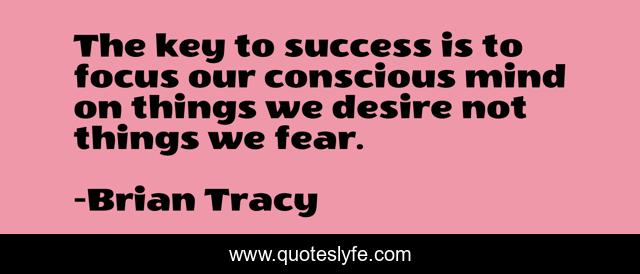 This page presents the quote "The key to success is to focus our conscious mind on things we desire not things we fear.". Author of this quote is Brian Tracy. This quote is about desire, key-to-success, focus, success, brian-tracy,.
