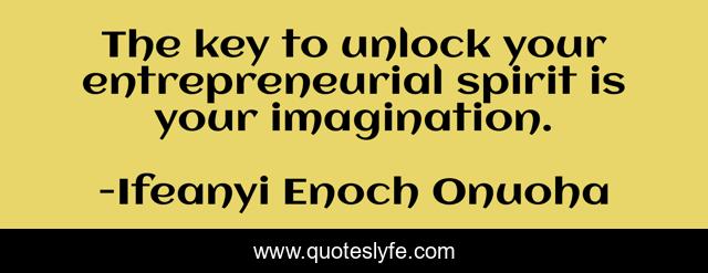 This page presents the quote "The key to unlock your entrepreneurial spirit is your imagination.". Author of this quote is Ifeanyi Enoch Onuoha. This quote is about business, success, entrepreneur, money-life, mogul, spirit,.
