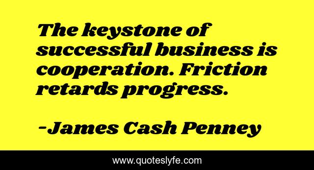 This page presents the quote "The keystone of successful business is cooperation. Friction retards progress.". Author of this quote is James Cash Penney. This quote is about successful, progress,.