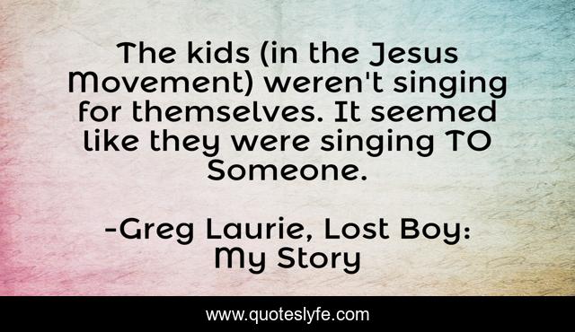 This page presents the quote "The kids (in the Jesus Movement) weren't singing for themselves. It seemed like they were singing TO Someone.". Author of this quote is Greg Laurie, Lost Boy: My Story. This quote is about christian-music, worship, submission,.