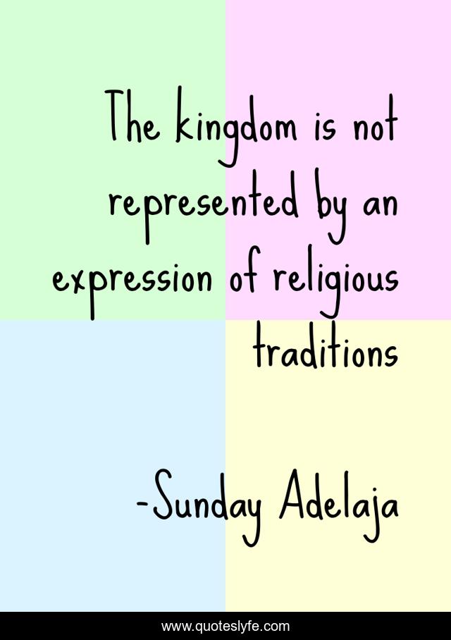 This page presents the quote "The kingdom is not represented by an expression of religious traditions". Author of this quote is Sunday Adelaja. This quote is about kingdom, expression, religious,.