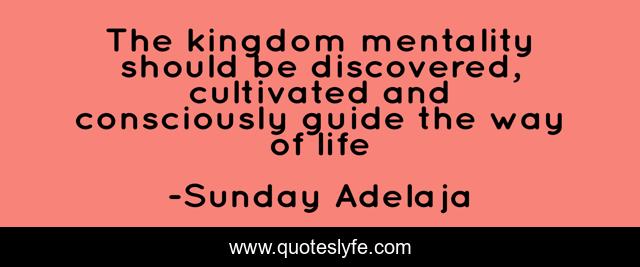 This page presents the quote "The kingdom mentality should be discovered, cultivated and consciously guide the way of life". Author of this quote is Sunday Adelaja. This quote is about kingdom, life, mentality, kingdom-of-god, cultivate, way-of-life,.