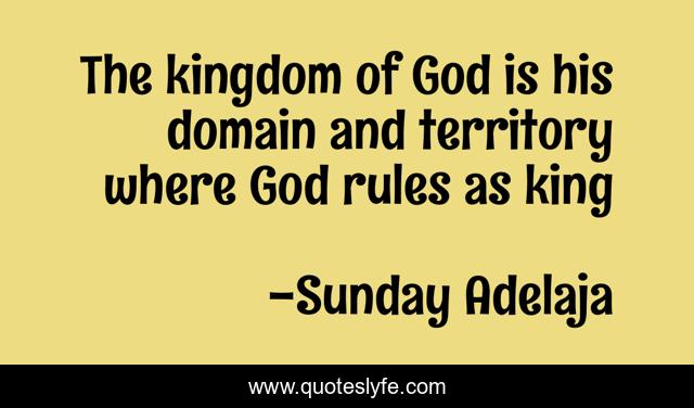 This page presents the quote "The kingdom of God is his domain and territory where God rules as king". Author of this quote is Sunday Adelaja. This quote is about kingdom, domain-territory, rule, god,.