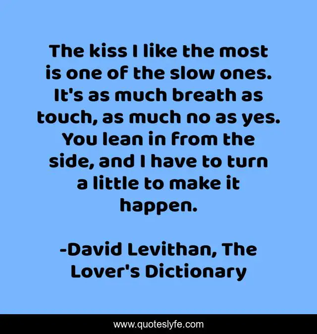 "David Levithan, The Lover's Dictionary Quotes." Quoteslyfe.com, 2025. Fri. 05 Dec. 2025. <https://www.quoteslyfe.com/quote/The-kiss-I-like-the-most-is-196898>.