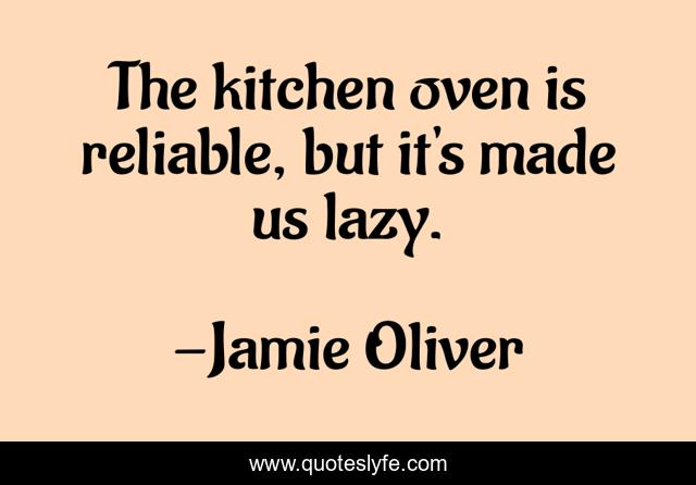 This page presents the quote "The kitchen oven is reliable, but it's made us lazy.". Author of this quote is Jamie Oliver. This quote is about lazy, reliable, kitchen,.
