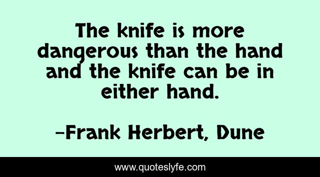 "Frank Herbert, Dune Quotes." Quoteslyfe.com, 2025. Sun. 07 Dec. 2025. <https://www.quoteslyfe.com/quote/The-knife-is-more-dangerous-than-the-217013>.
