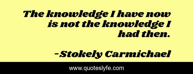 This page presents the quote "The knowledge I have now is not the knowledge I had then.". Author of this quote is Stokely Carmichael. This quote is about then, now, had,.