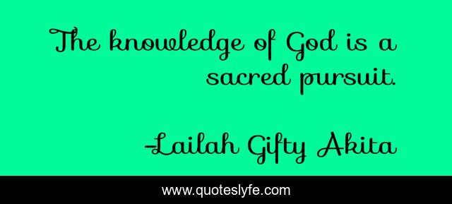 This page presents the quote "The knowledge of God is a sacred pursuit.". Author of this quote is Lailah Gifty Akita. This quote is about faith, education, christian, knowledge, god,.