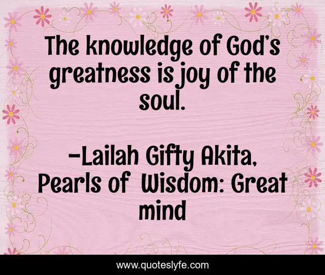 "Lailah Gifty Akita, Pearls of Wisdom: Great mind Quotes." Quoteslyfe.com, 2025. Fri. 05 Dec. 2025. <https://www.quoteslyfe.com/quote/The-knowledge-of-God-s-greatness-is-97325>.