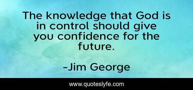 This page presents the quote "The knowledge that God is in control should give you confidence for the future.". Author of this quote is Jim George. This quote is about control, confidence, knowledge, god, jim-geogre, future-inspirational,.