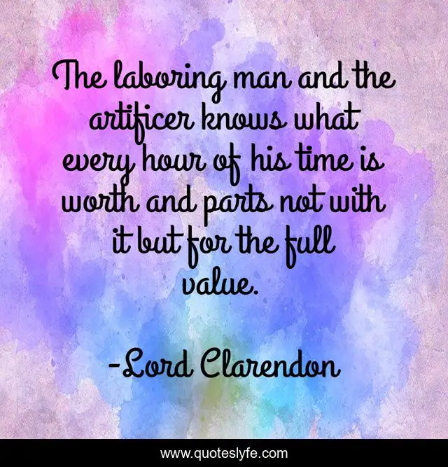 This page presents the quote "The laboring man and the artificer knows what every hour of his time is worth and parts not with it but for the full value.". Author of this quote is Lord Clarendon. This quote is about day, one,.