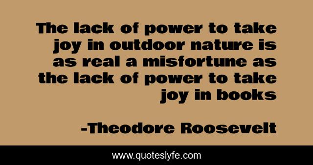 This page presents the quote "The lack of power to take joy in outdoor nature is as real a misfortune as the lack of power to take joy in books". Author of this quote is Theodore Roosevelt. This quote is about books, happiness, nature,.
