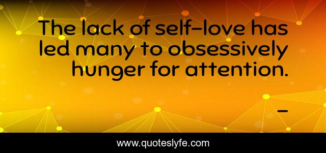 This page presents the quote "The lack of self-love has led many to obsessively hunger for attention.". Author of this quote is . This quote is about edmond-mbiaka, hunger-for-attention, the-lack-of-self-love, the-hunger-of-attention,.