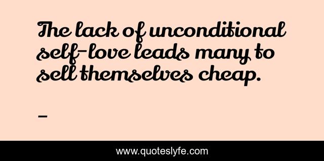 This page presents the quote "The lack of unconditional self-love leads many to sell themselves cheap.". Author of this quote is . This quote is about never-sell-yourself-cheap, the-lack-of-self-love, selling-yourself-cheap, edmond-mbiaka, unconditional-self-love, the-lack-of-unconditional-love, don-t-sell-yourself-cheap,.