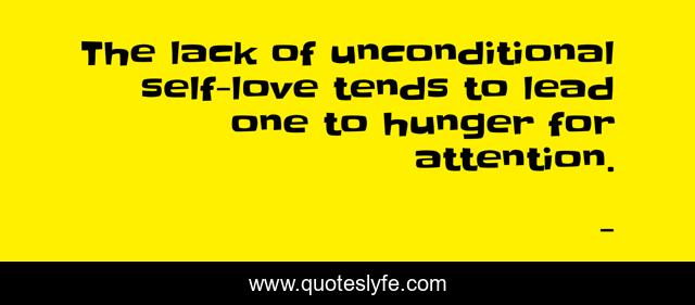 This page presents the quote "The lack of unconditional self-love tends to lead one to hunger for attention.". Author of this quote is . This quote is about edmond-mbiaka, the-hunger-for-attention, unconditional-self-love, the-lack-of-self-love, seeking-for-attention,.