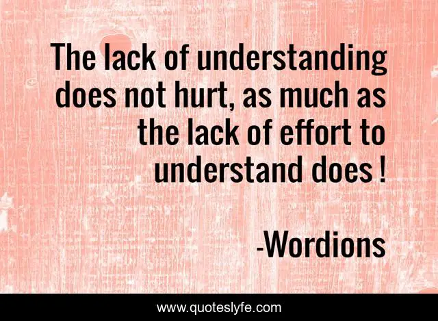 This page presents the quote "The lack of understanding does not hurt, as much as the lack of effort to understand does !". Author of this quote is Wordions. This quote is about wordions-com, hurt, lack-of-understanding, wordions, understanding,.