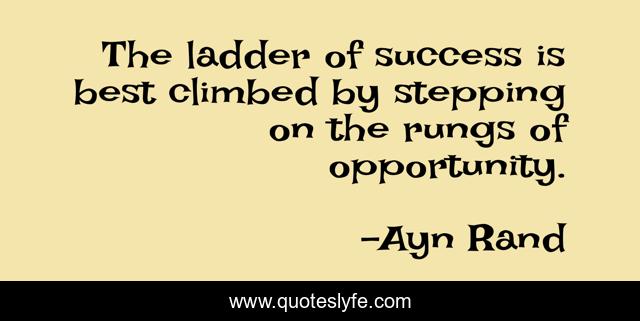 This page presents the quote "The ladder of success is best climbed by stepping on the rungs of opportunity.". Author of this quote is Ayn Rand. This quote is about ladder, opportunity, success,.