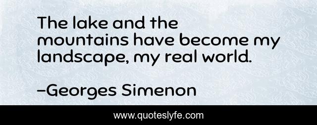 This page presents the quote "The lake and the mountains have become my landscape, my real world.". Author of this quote is Georges Simenon. This quote is about mountains, landscape, world,.