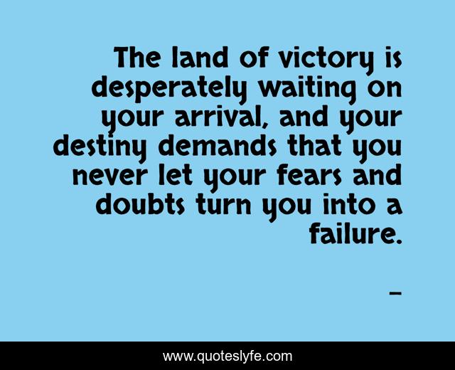 The land of victory is desperately waiting on your arrival, and your destiny demands that you never let your fears and doubts turn you into a failure.