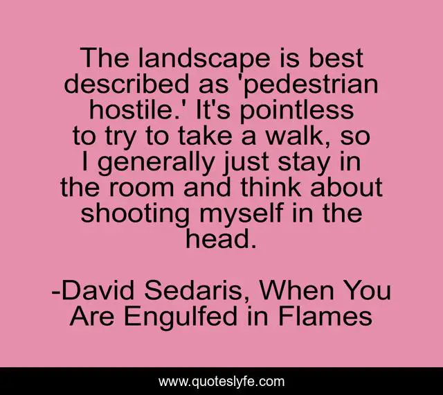 "David Sedaris, When You Are Engulfed in Flames Quotes." Quoteslyfe.com, 2025. Mon. 08 Dec. 2025. <https://www.quoteslyfe.com/quote/The-landscape-is-best-described-as-pedestrian-21447>.