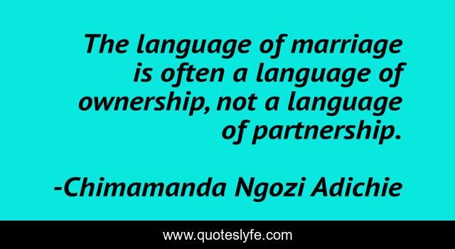 This page presents the quote "The language of marriage is often a language of ownership, not a language of partnership.". Author of this quote is Chimamanda Ngozi Adichie. This quote is about partnership, marriage, feminism,.