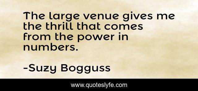 This page presents the quote "The large venue gives me the thrill that comes from the power in numbers.". Author of this quote is Suzy Bogguss. This quote is about me, large, numbers,.