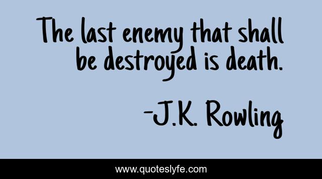 This page presents the quote "The last enemy that shall be destroyed is death.". Author of this quote is J.K. Rowling. This quote is about enemy, death, bible,.